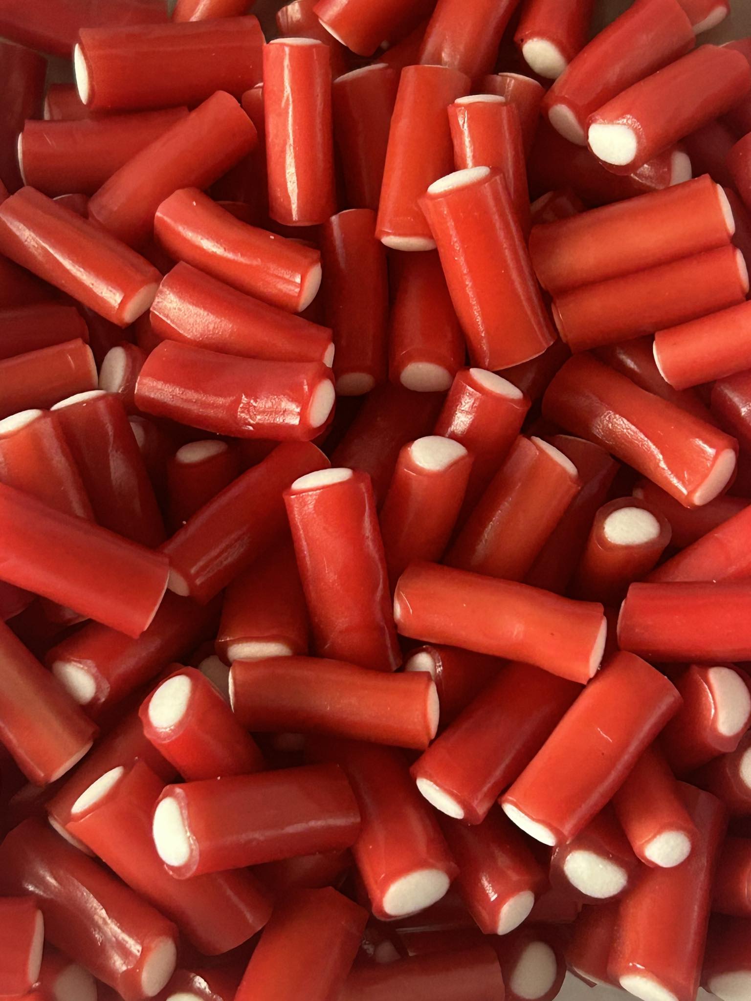 Croquez dans nos mini tubes fraise, de petites bouchées gélifiées au goût intense de fraise.